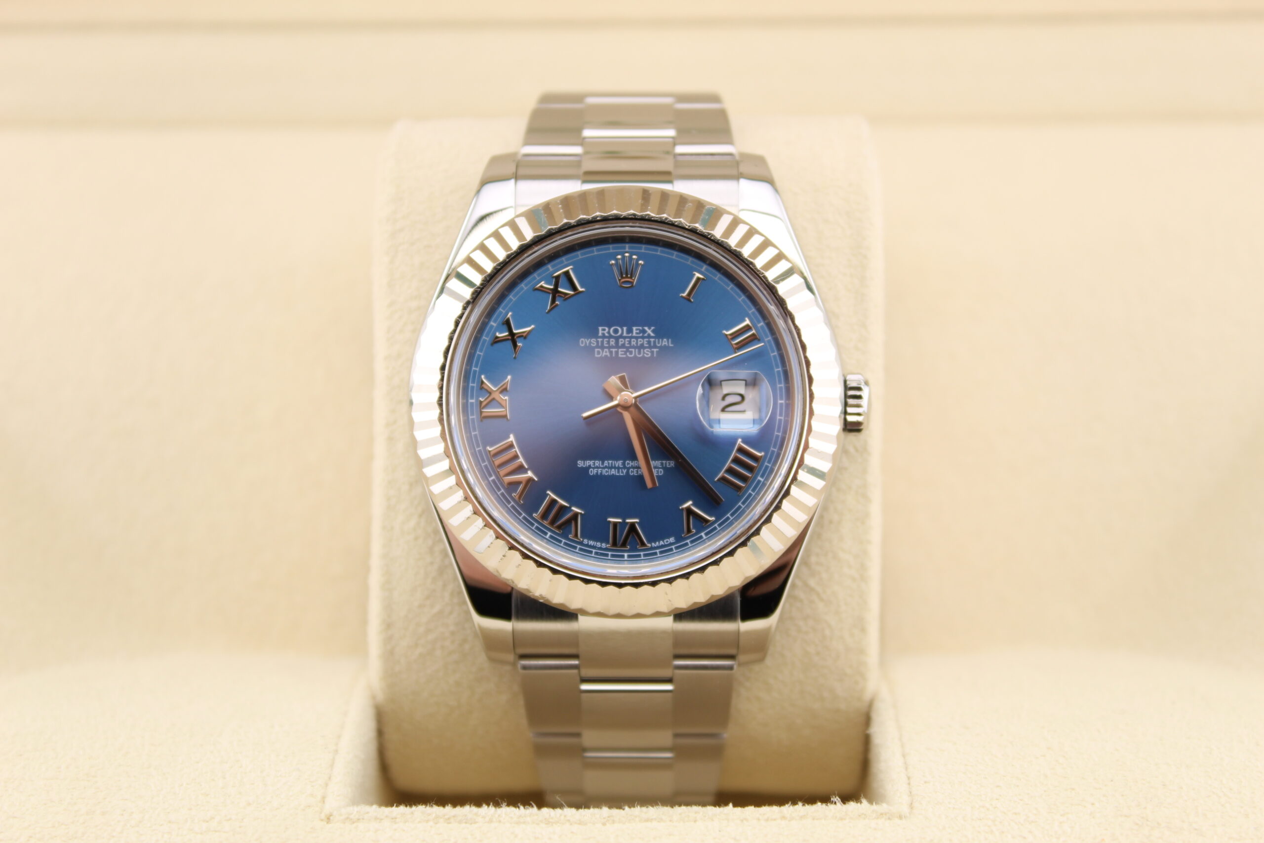 The Rolex Datejust 116334 is a timeless and versatile classic, blending refined elegance with contemporary presence. Featuring a 41 mm Oystersteel case paired with a white gold fluted bezel, it delivers a bold yet sophisticated wrist presence that suits both formal and everyday wear. Powered by Rolex’s reliable automatic movement with a 48-hour power reserve, the 116334 offers dependable performance and precise timekeeping. Its iconic date window with Cyclops magnification and durable Oyster bracelet complete the look, making this Datejust a distinguished choice for those who appreciate enduring style and functionality.